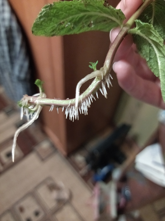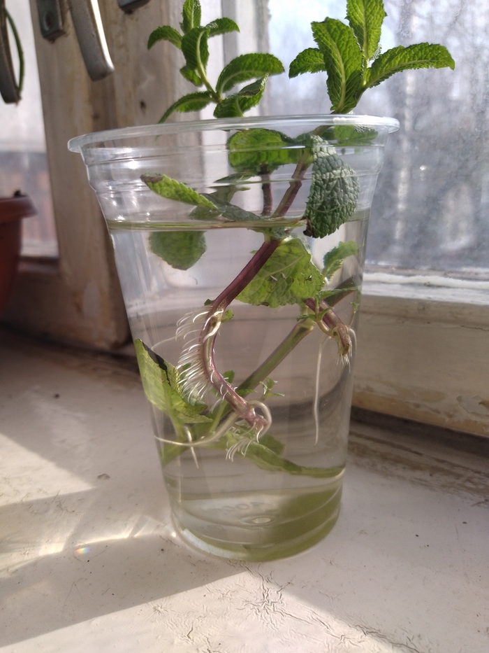 Сестра купила для коктейлей упаковку мяты на новый 2022 год, т.е. почти 1,5 года назад. Я сразу поставила мяту в банку с водой, накрыла пакетом и убрала в холодос, чтобы она не завяла, пока мы готовили новогодний стол и прочую суету наводили. Посколько нам на застолье хватило и вискарика, до коктейлей тогда дело так и не дошло, а мяту я снова нашла в холодильнике только в феврале. Была она там на удивление бодрая, хоть и с минимальным количеством воды в банке. Стало уже жалко ее использовать, поставила на подоконник кухонный, где у меня всякая растительность съедобная растет. Мята вдребезнулась, сопритюкнулась и начала активно отращивать корни, а весной 22 года была посажена в горшок. В горшке ей стало так хорошо, прям как дома, что она решила сходить в гости в соседний горшок с базиликом. Буквально. Отрастила два горизонтальных стебля, сильно отличающиеся внешне от вертикальных (более толстые, какие-то зелено-розоватые и с маленькими листиками через равные промежутки стеблей), дотянулась ими до соседнего горшка (расстояние, к слову, было около 15 см, но стебли росли не в любые стороны в надежде найти землю, а именно в сторону базилика. Все это время я периодически прищипывала вертикальные ветви, сушила листья и заваривала вкусный чай, наблюдая за рейдерским захватом базиличьего жилища. В конце концов дотянувшись до горшка, мята оперативно свилась там в пару колец вдоль горшечного бортика и заякорилась корнями. Базилик решил, что это выше его сил и помер. Мята начала расти в двух горшках одновременно. Но видимо горшки были слишком маленькие для нее, т.к. в какой-то момент мате стало заметно нехорошо, вяло и тоскливо. Я выкопала все, что можно было реанимировать, посадила в один большой горшок, а вытянувшиеся вертикальные стебли отрезала и снова воткнула в банку с водой, щедро сыпанув туда корневина. Спустя некоторое время эти верхушки в банке ощетинились уверенными корешками и поселились в том же большом горшке. Мятке снова хорошо там, пока вроде больше не планирует экспансии в соседние горшки. Периодически тру ее листья, чтобы был мятный запах, и продолжаю заваривать чай (черный рассыпной, мята и лемонграсс, рекомендую прям). Так что да, мятка хороший домашний питомец.
