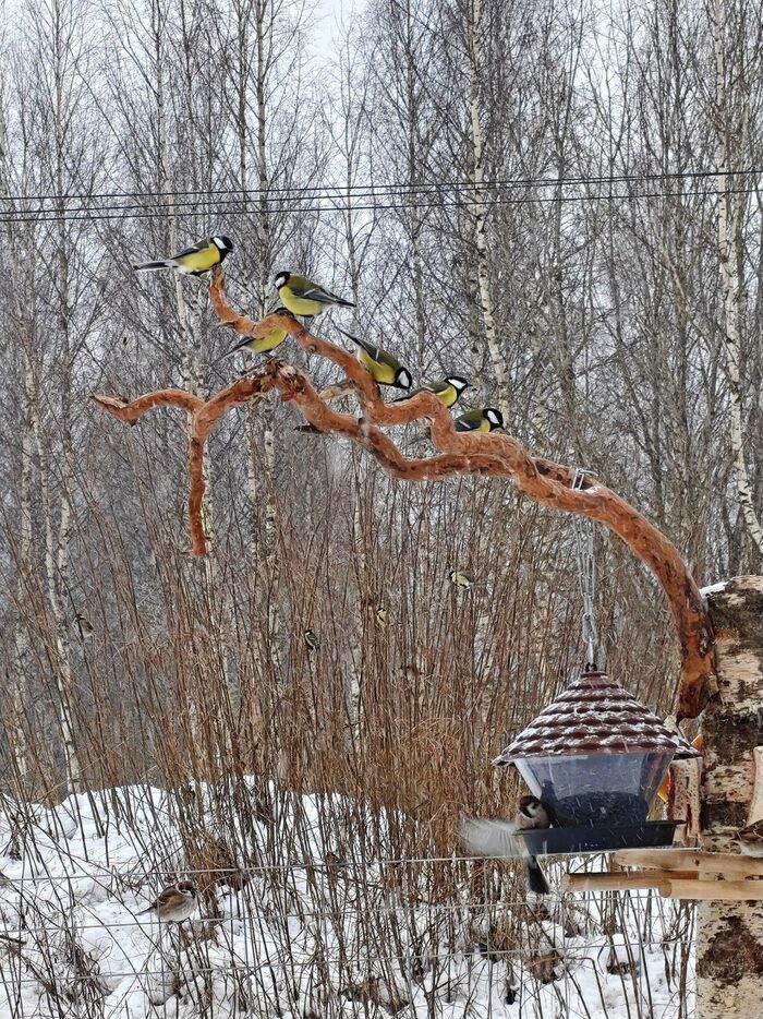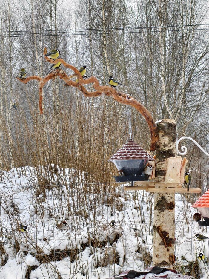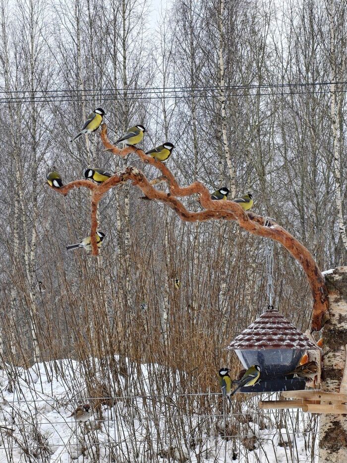 Я нашла ее несколько лет назад в лесу. Она показалась мне очень красивой и я сохранила ее в хозблоке. Теперь я стараюсь поймать момент, когда на ней будет больше все синичек.