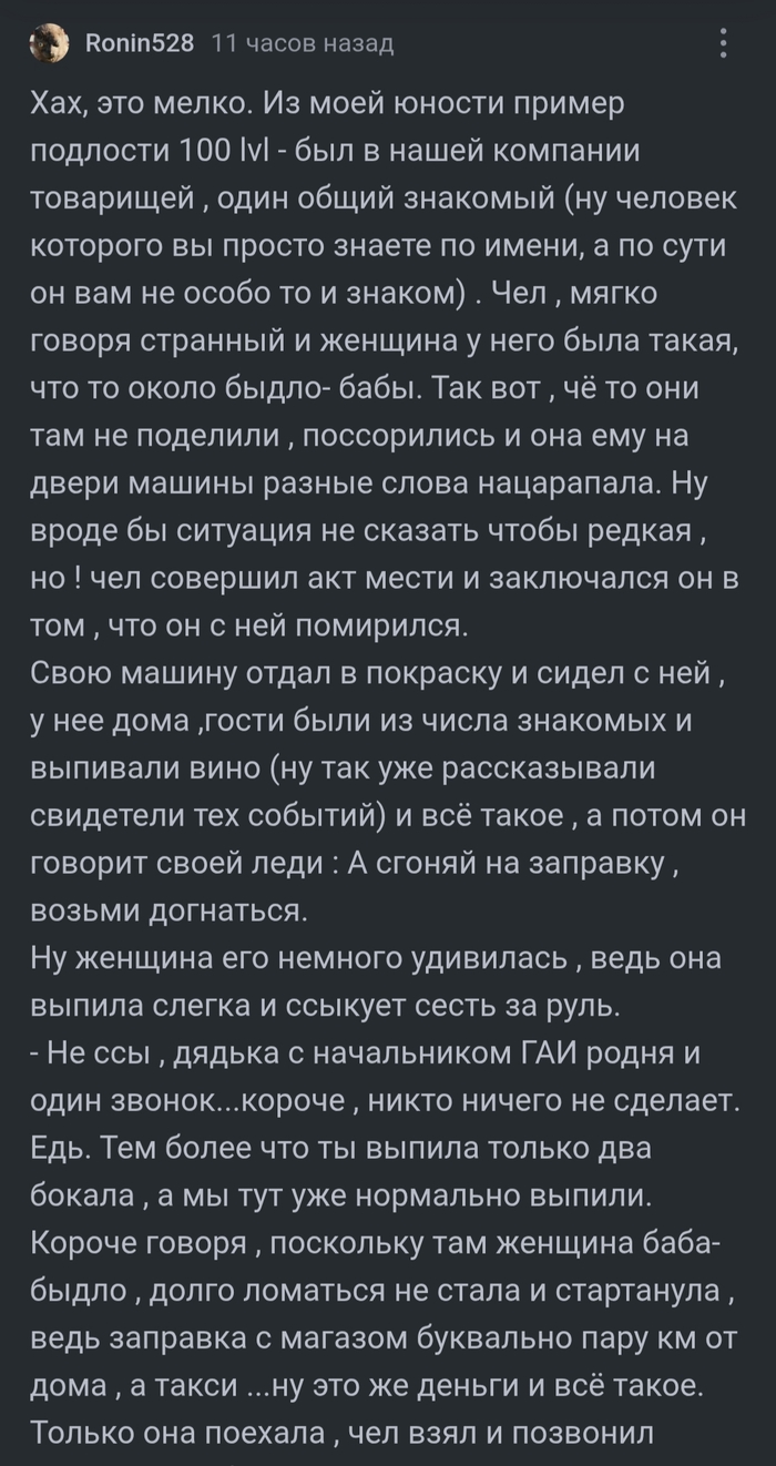 Например, на восьмое марта у нас в троллейбусе мужик стал к выходу продираться и одного парня пихнул животом И тот за это вынул ножик и мужику – прямо в живот, мужик прямо обалдел и помер, а парень-то вместо него вышел из троллейбуса и в кино пошел. Но что хорошо – Бог правду видит, кинотеатр-то не работал, его как раз в пятницу сожгли, чтобы не мешали в нем делать казино.
