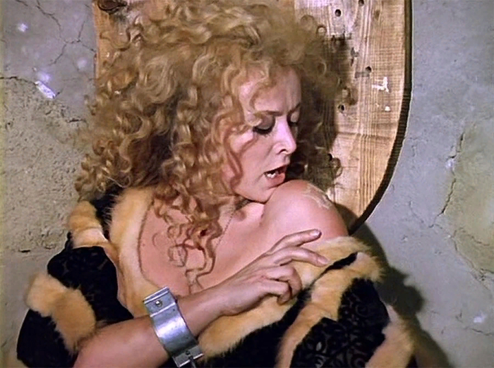 Клеймо он обнаружил случайно, когда новоиспеченная графиня во время охоты упала с лошади и потеряла сознание. Граф режет на ней платье, но платье с плеч ползет само, а там - ну нифигa себе! - клеймо.