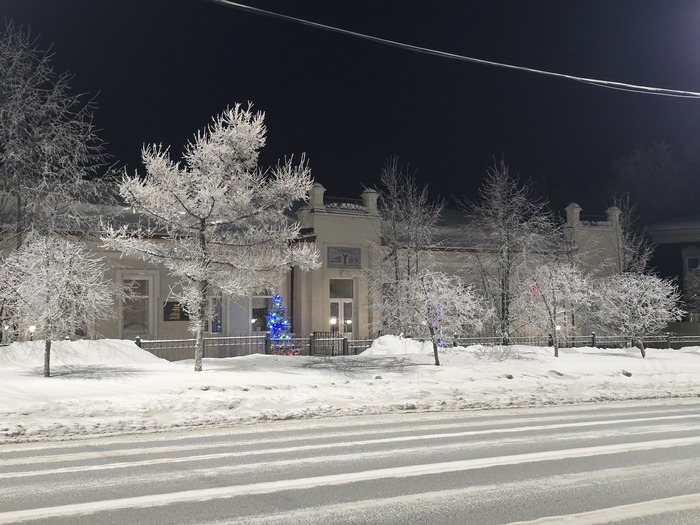 А сейчас в Томске мороз от 30 до 40 °С. Но в этом есть и свои плюсы. Утром был очень густой туман, а днём он замёрз на деревьях. Вот что я видел по пути с работы на Красноармейской.