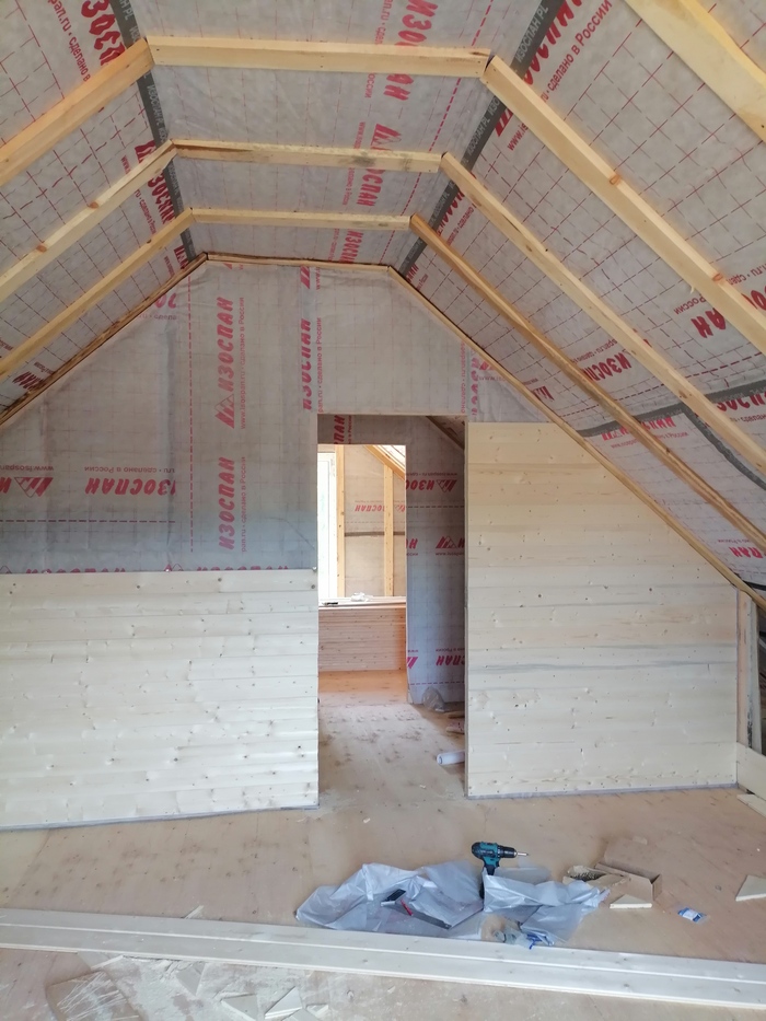 Первое, что бросается в глаза, повсеместные обёртывания или загибы пароизоляции и ветрозащиты