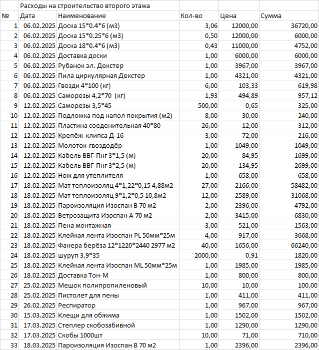 А дальше наступило лето, и мы приступили к самому неприятному этапу - укладки минваты. Было закуплено: