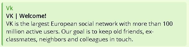 VK — крупнейшая европейская социальная сеть с более чем 100 миллионами активных пользователей. Наша цель — поддерживать связь между старыми друзьями, бывшими одноклассниками, соседями и коллегами.