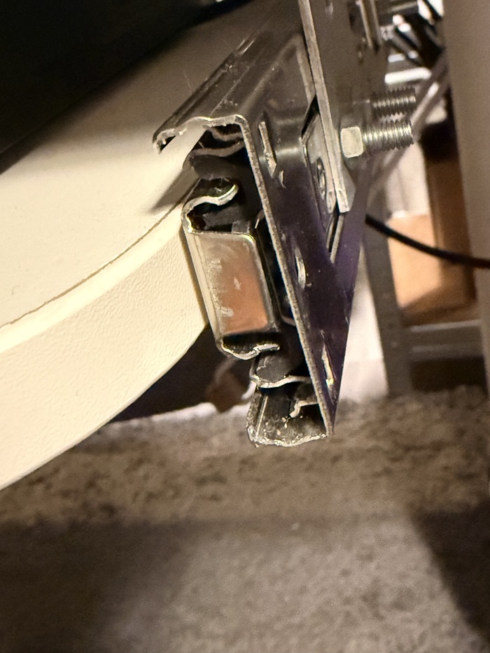 Доработка тумбы. Нужно было поднять тумбу над полом. Деревянные ножки были куплены на маркетплейсе, а чтобы подружить их с тумбой придумал кронштейны, которые спрятаны внутри. Пятая нога по середине - регулируемая.