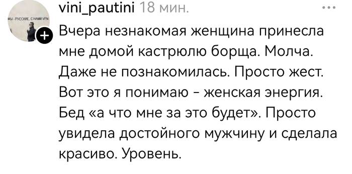 - В общем необходимо нечто. Но по-настоящему. Нужен настоящий мужской поступок. Чтобы я могла написать об этом в интернете. Перфо'манс гло'бал! Рассказывать долго, так что я пожалуй начну издалека. Времена изменились. Вы согласны? Ну так вот. В средневековье, когда ещё не исчезли рыцари...