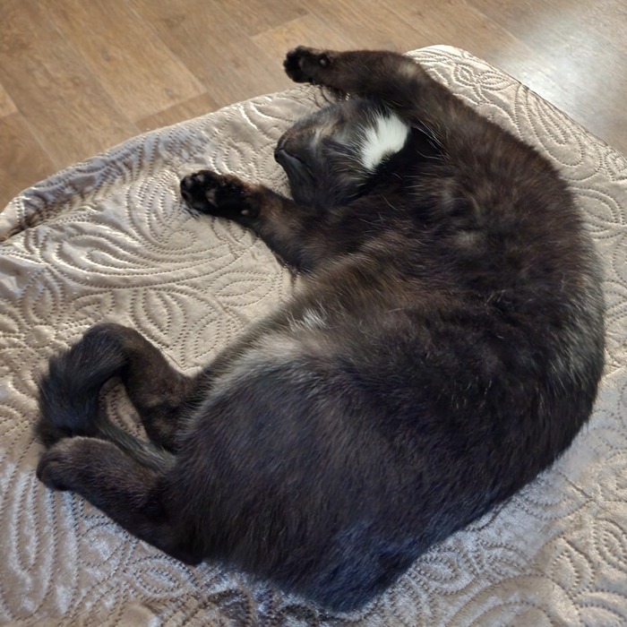 Очень вредная и своенравная кошатина. Была не раз в путешествии, также несколько раз пыталась самовыпилиться разными способами - поеданием ядовитых растений, выбросом из окна, дракой с бывшим мужем. Но до сих пор жива, весной будет 8 годиков, однако все еще гоняется за игрухами, тыгыдыкает и надеюсь, что проживет еще много лет!