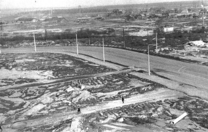 В деревне Кудрово в 1958 г. проживало лишь 307 человек (снимок 1974 г., окраина улицы Дыбенко).