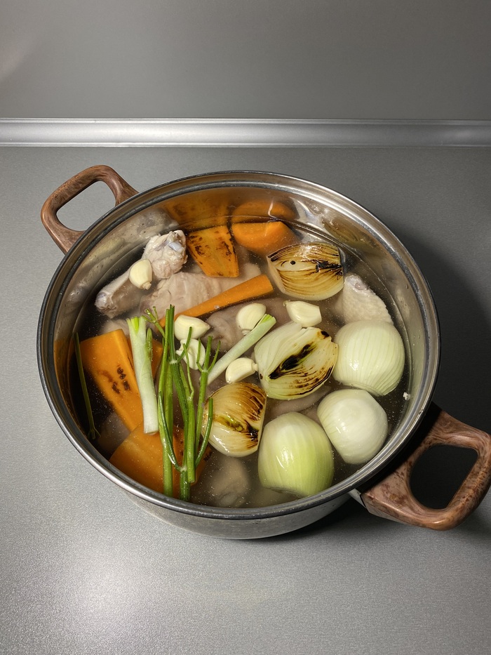На литра три воды штук восемь крыльев, луковица на четыре части, морковь на четыре части (вдоль). Варим минут сорок. (Я раньше делал на шеях индейки, но хуй купишь у нас их теперь. Тогда варить надо часа полтора).