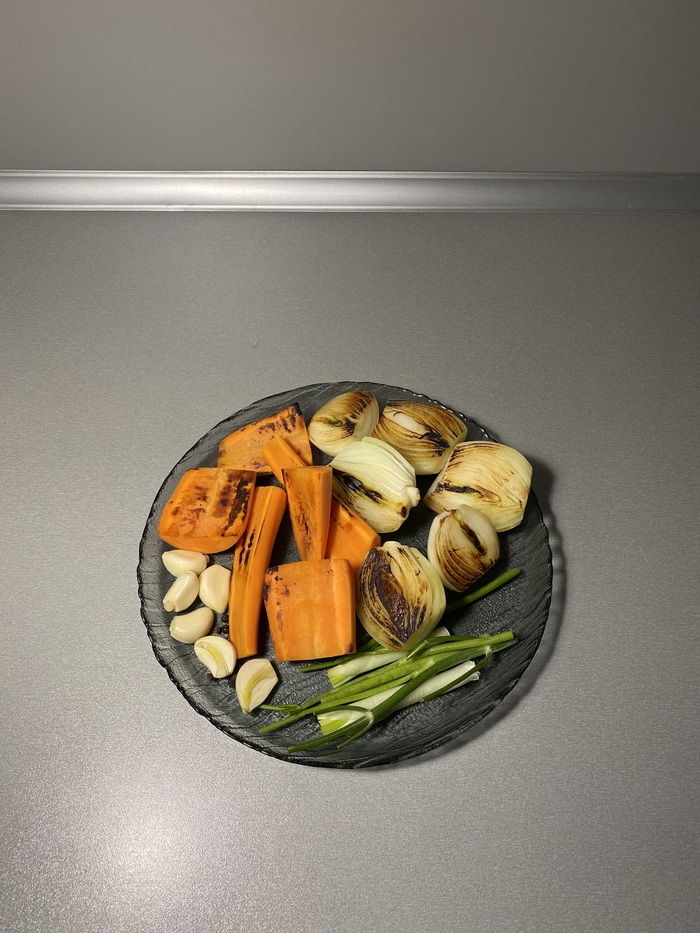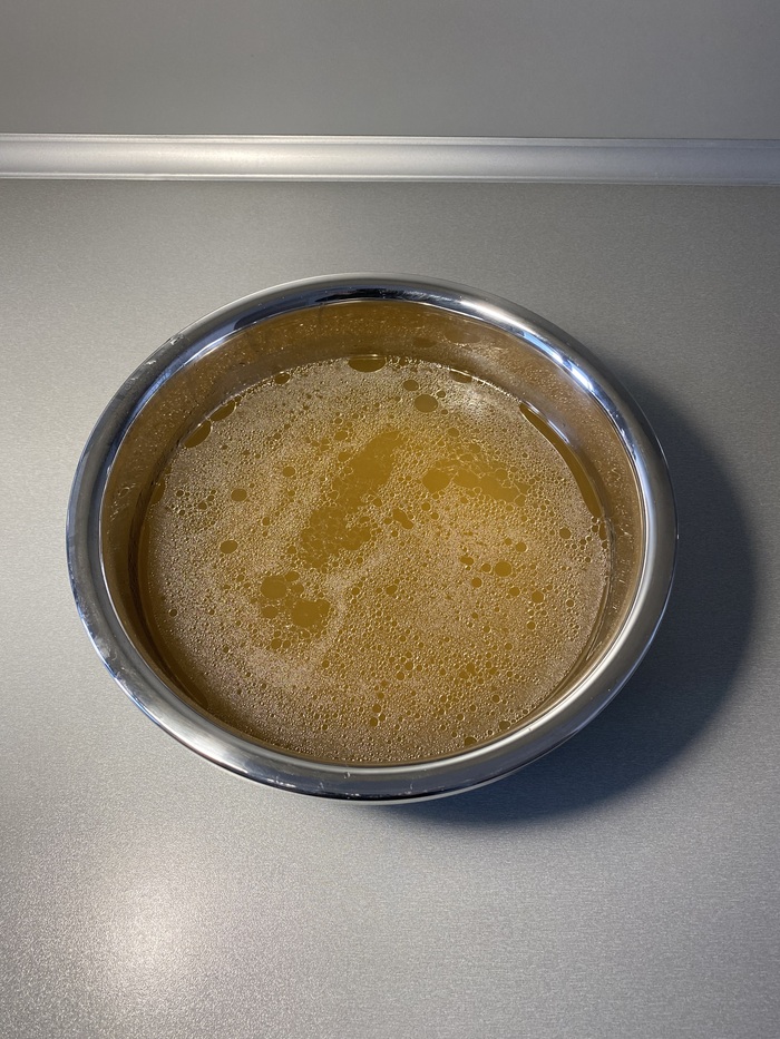 Процеживаем. Лук на помойку, морковку туда же (нет, у меня собак готов душу продать за эту морковку)
