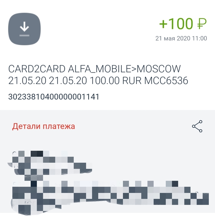 Через несколько дней захожу в приложение Альфы - деньги на дебетовом счете на месте, вместо этого образовалась задолженность по кредитной карте. Как выяснилось, я по ошибке вводил реквизиты кредитной стороны карты, подтверждал дебетовым CVC-кодом, смс-кодом и операции проводились!