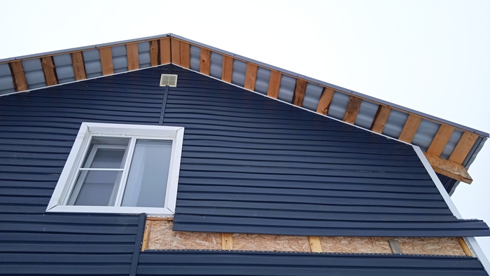 Обычно, первым делом я обхожу дом по кругу. В принципе, у меня есть дрон, но с ним много возни и я достаю его только если нужно обнаружить повреждение при явной и серьёзной протечке кровли, если нет доступа на чердак. И первое, что бросилось мне в глаза - сайдинг выдавило и погнуло по всей высоте фасада.