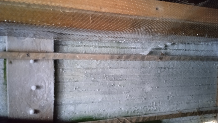 Монтаж противомышиной сетки тоже впечатлил. Этакие гамачки для комфортного отдыха грызунов. Честно говоря, даже не могу представить, каким образом добиться такого результата. Разве что, ходить по предварительно закреплённой сетке. Другого варианта закрепить её таким образом я не вижу. Даже если делать это прямо из подпола, получится ровнее. Но это тоже не основной элемент конструктива, а мне надоело ползать по грязи и мы решили посмотреть дом изнутри.