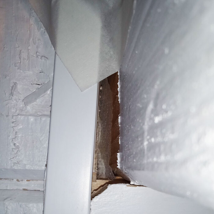 Например, пароизоляция в месте примыкания матицы к стене дома не была проклеена и просто болталась внутри щели.