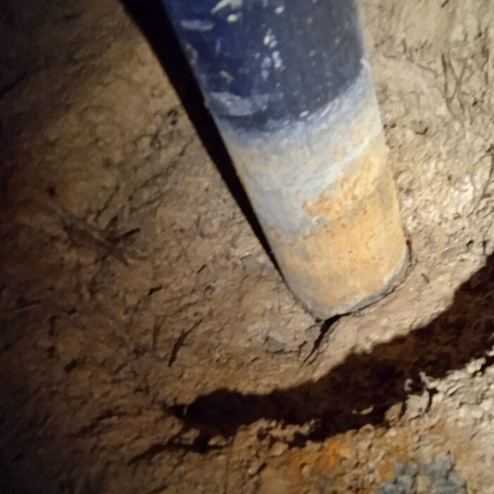 Эти наблюдения заставили меня вновь отправиться в подпол, чтобы удостовериться в стабильности основания и сохранении его правильной геометрии. Я прополз весь периметр подполья по жидкой глине и мои старания были вознаграждены.