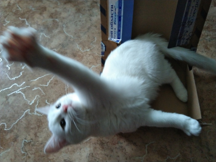 Стоило открыть коробку, как инспекция наперегонки ринулась проверять что там внутри. Балабака сразу учуяла вкусняхи, а кошь сказала, что забирает коробку. Ха ха классика)