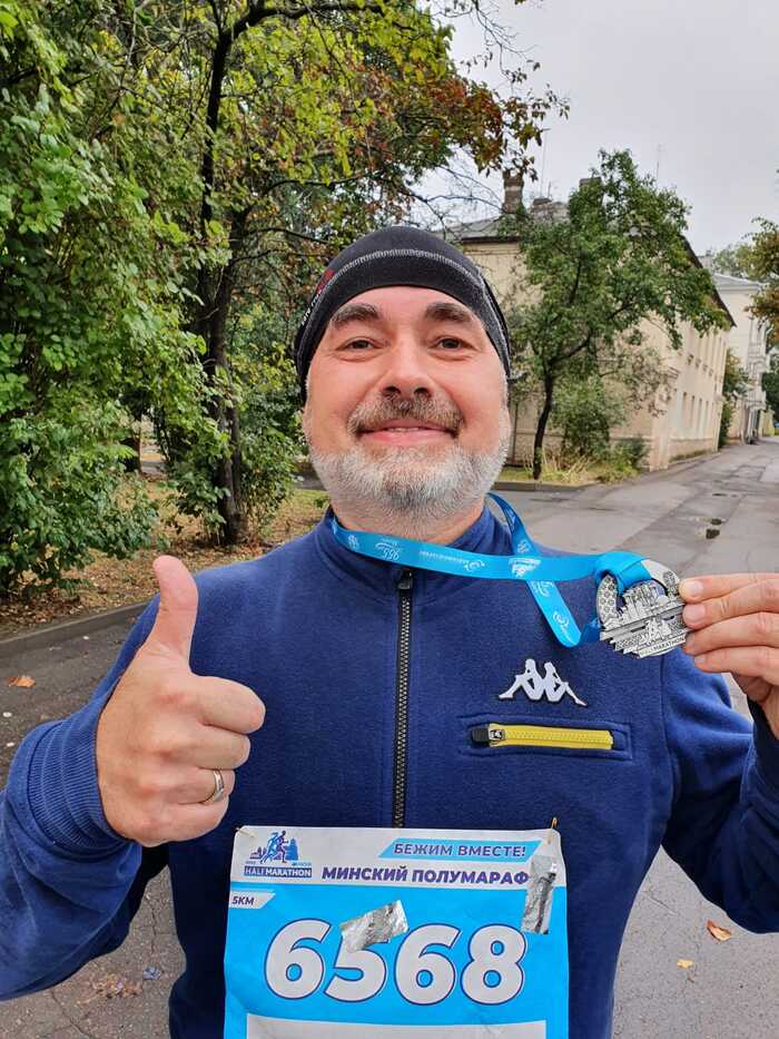 Итак, сегодня 8 сентября, я осуществил свою давнишнюю задумку - пробежал полумарафон (21,1 км). Мне 62 и к этому я целенаправленно шёл с февраля 2022 года. Результат скромный - 2 часа 17 минут 37 секунд, но для меня и это успех. Теперь о самом забеге - было весело! Огромные, выше человеческого роста, белый медведь и панда, клоуны, Баба Яга, Кощей Бессмертный, грустные клоуны, скоморохи на ходулях, Человек-паук и другие сказочные и фантастические персонажи. На трассе были и оркестр и квартет музыкантов, которые чудесно играли, жаль послушать их было некогда. Буквально отовсюду лилась музыка, даже на самокате была установлена колонка, которую перемещали со скоростью потока бегунов (оказывается, и от самокатов есть польза!). Вдоль трассы стояли зрители, многие поддерживали, кто плакатом, кто пятюней (ладошка об ладошку). Особенно порадовал гаишник, которые раздавал сегодня не штрафы, а пятюни. Финиш был на Национальном олимпийском стадионе "Динамо" (Минск) под аплодисменты, музыку, комментарии ведущих. После финиша выдали медаль (фото в комментариях). Короче, праздник удался.