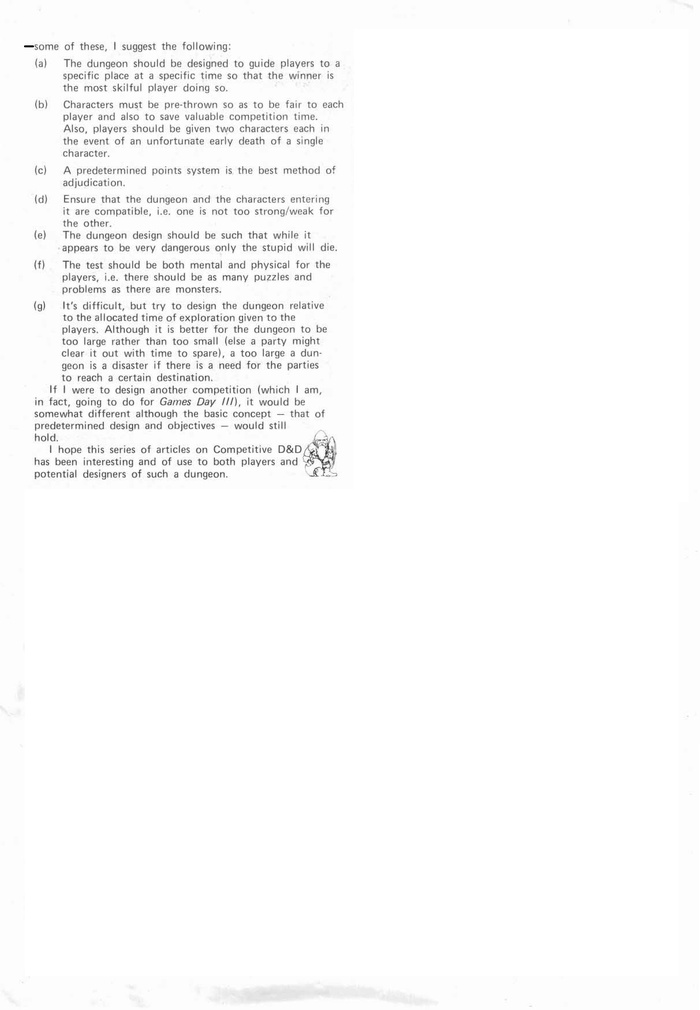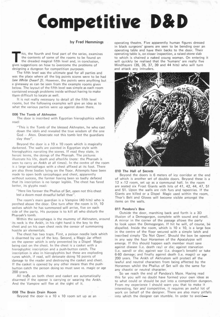 В следующем выпуске стартует новая регулярная рубрика под названием «Фабрика чудовищ» (The Fiend Factory). Она займёт примерно страницу и будет включать новых чудовищ, присланных читателями White Dwarf и отредактированных Доном Тернбуллом, который присвоит каждому опубликованному чудовищу показатель угрозы (Monstermark). Мы особенно заинтересованы в чудовищах с уникальными качествами или характеристиками. Каждый опубликованный монстр даст автору право на бесплатный выпуск White Dwarf, в котором он появился.