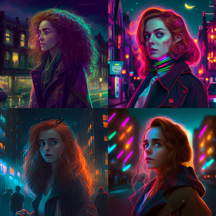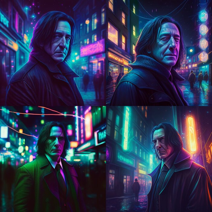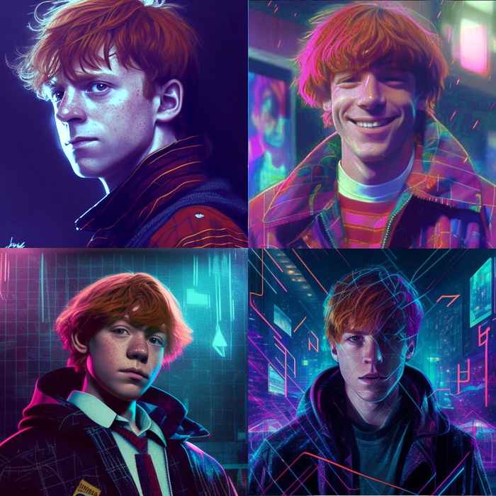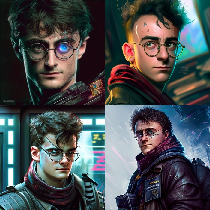 Промпт: "<Harry Potter>, kiberpunk style, portrait", Midjourney - v4.