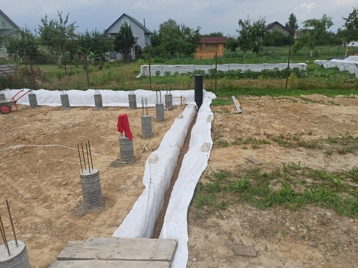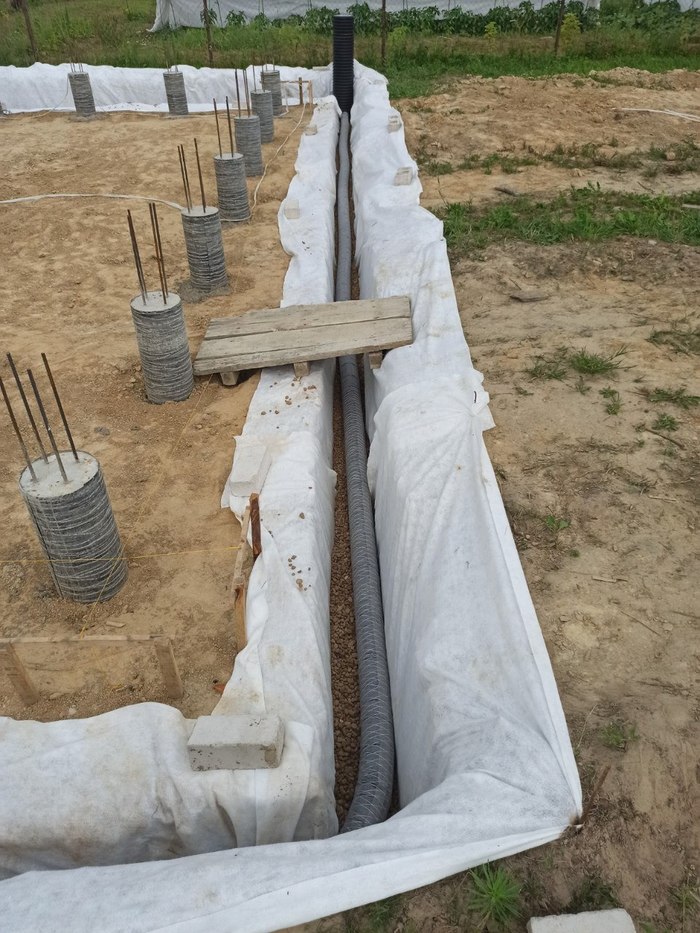 Но что-то я отвлёкся. Вернёмся к дренажу и гравию, коим и было засыпано основание траншеи между дренажными колодцами.
