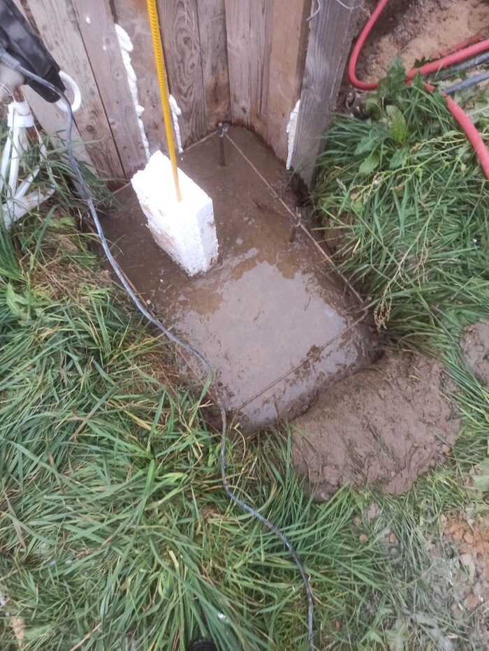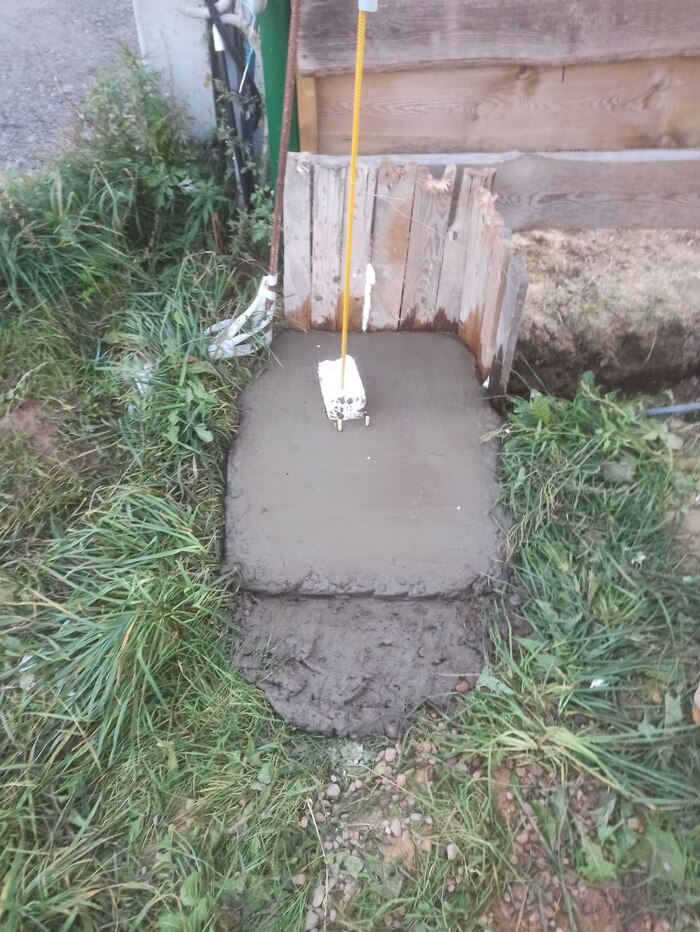 А, и чуть не забыл. Залил бетонный кубик под "ногу" для электрощита.