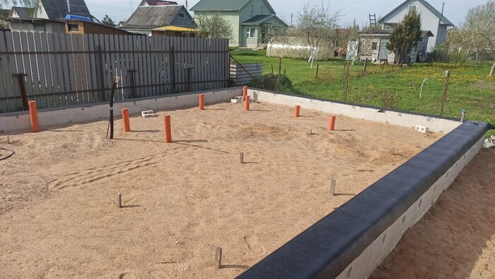 А, ну и из-за чего задержался так, и не выложил пост вчера. Хотел доделать основание под черновую стяжку, потому как подумал, что смысл "гнать миксер" ради 0.5 кубов бетона на перемычки - жирно. Решил сразу сделать и "черновую" стяжку и перемычки из нормального бетона. Но об этом уже в следующей "подчасти" наверное... Пока не решил...