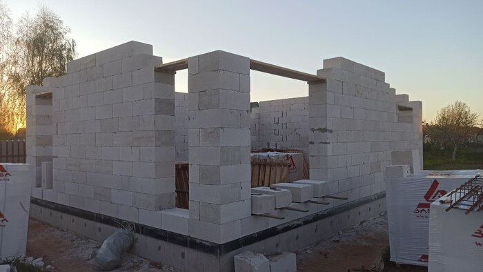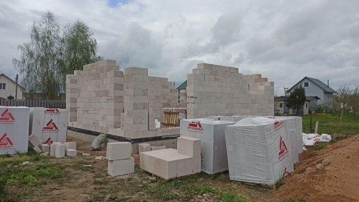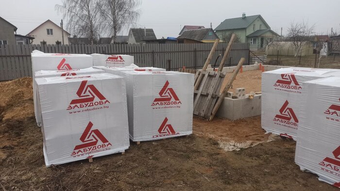Блок кстати 625х400х250 (D500), D400 в Беларуси, как оказалось днём с огнём... Короче маємо те, що маємо... Кстати, может кому пригодиться идея, как без лесов до отметке 3350(с учётом высоты фундамента) выкладывать блоки. Не знаю какие поддоны у других производителей у Забудовы - отлично подходят... Хотя лучше бы блоки лучшего качества делать научились...