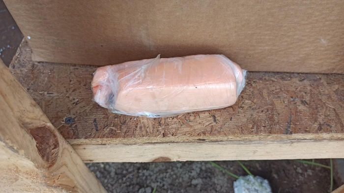 Собственно на фото выше уже видно что-то белое, внутри самого строения. Желание сэкономить - мне кажется всегда найдёт отклик в душе нашего человека. Забегая вперёд скажу, что стоимость обычной плёнки, вторичной переработки, для "гидроизоляции" и обеспечения "отсекающего/разделительного" слоя между песком и будущей бетонной плитой(подбетонкой) - как крыло от самолёта... при чём, такое ощущение что топливо из этого крыла то же не сливали, дабы и стоимость увеличить и вес... ну и плотность этого изделия - мягко сказать го@#$@но редкостное. Собственно о чём это я, об экономии. НЕ ВЫБРАСЫВАЙТЕ, плёнку от поддонов в которых у вас упакованы блоки. И разрезайте из правильным способом. Сам способ к сожалению в фото не покажу, но постараюсь объяснить: