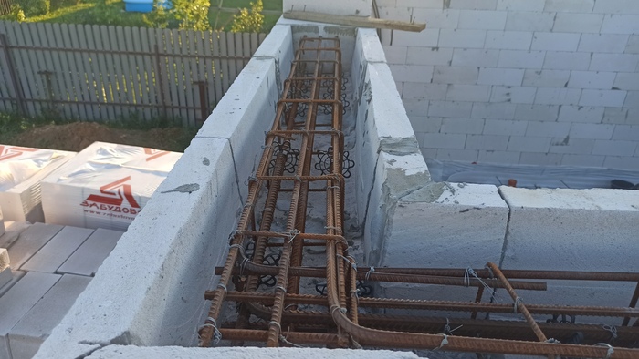 Признаюсь честно. Т.к. планировало делать #ЧПР, и на перемычку над окном приходилось аж 3 балки - арматурный карскас представляет из себя:
