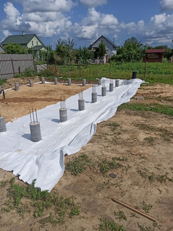Расстелил короче геотектиль, ну и как водится - 1 полосы не хватило. Где-то ошибся в расчётах.