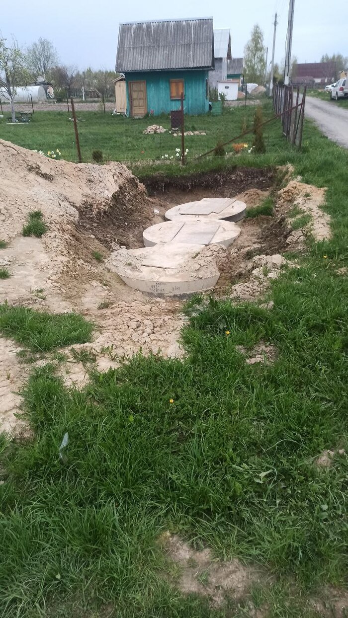 К моменту когда была снята и сдана опалубка, уже были заказы бетонные кольца на септик, ливневые колодцы и кессон. Собственно а потом случился пздц. и это ещё мягко сказано, т.к. экскаваторщиков в сезон - днём с огнём. Оказалось, что был свободен один, и только через день после доставки колец. Собственно сами кольца.
