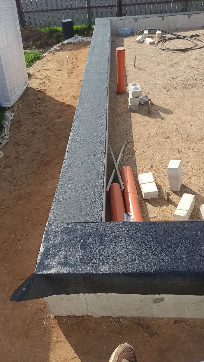 Нанес праймер, потом мастику которая с прошло года осталась от колец, ну и уложил гидроизоляцию