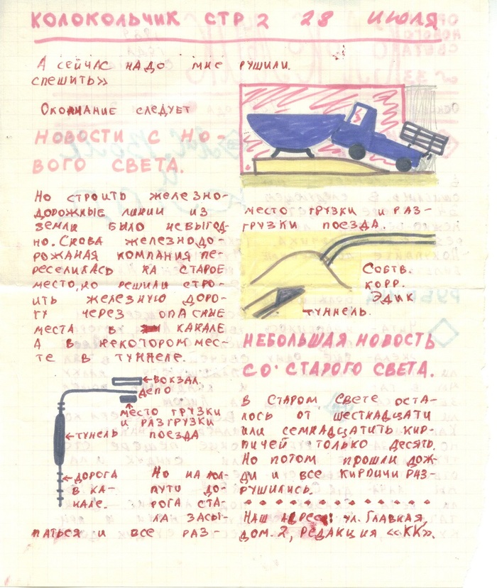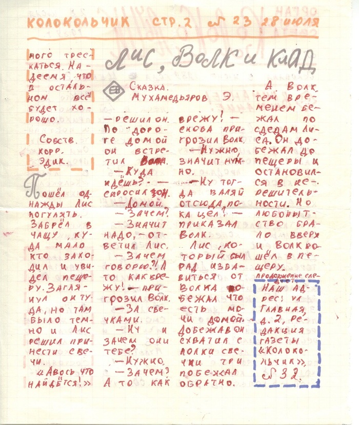 Дисклеймер. Хроники нашего детского мира с пруфами. Детская рукописная газета "Колокольчик", 1989 год. В 12 лет я выпускал газету. Объём - обычный тетрадный лист в клетку. Старался, чтобы газета как можно больше походила на настоящую: оформление, заголовки, печатные буквы, колонки и пр.