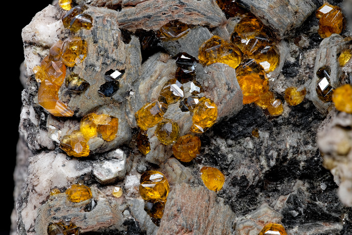 И более чистый спессартин. Это макро, реальные размеры самых больших кристаллов не превышают 2-3мм.