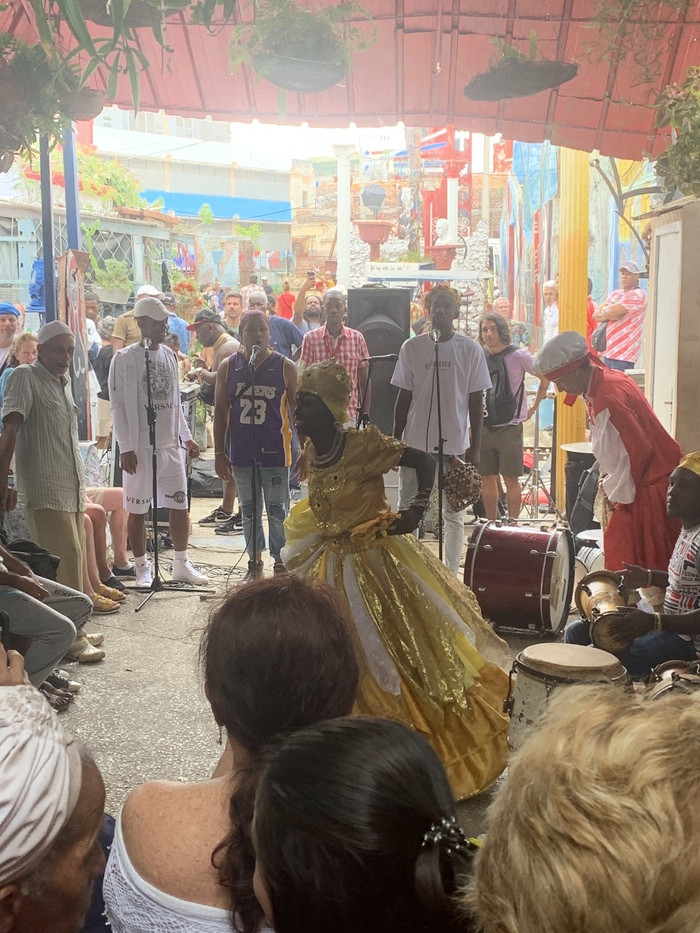 Насколько я знаю танцоры были в достаточно традиционных образах и там намешана куча околорелигиощной хрени. Женщины подходили за благословением к теткам, приносили деньги и просили, чего уж им там надо. Мужики тоже чего то себе хотели, но вдаваться в подробности я не стал. Немного о тамошней религии. На Кубе намешано всего и всякого. Я бы назвал это христианством с элементами Вуду. Так например они носят плетеные из бело/зеленых ниток браслеты разной степени навороченности в религиозных целях. При поездке на пароме бросают денежку в воду и молятся. Я аккуратно поспрашивал, но глубоко копать не стал. В любом случае, религия не мое.