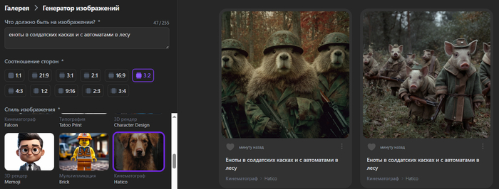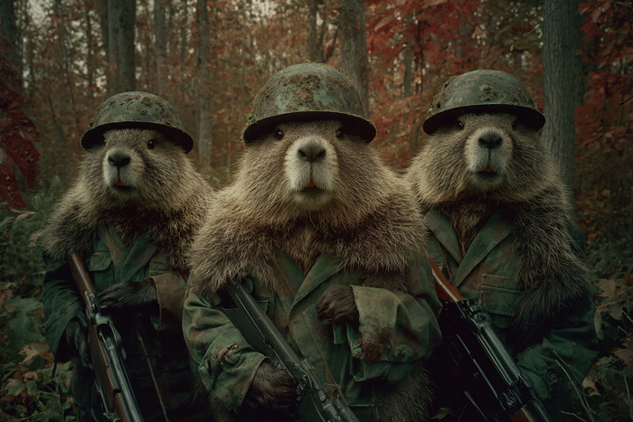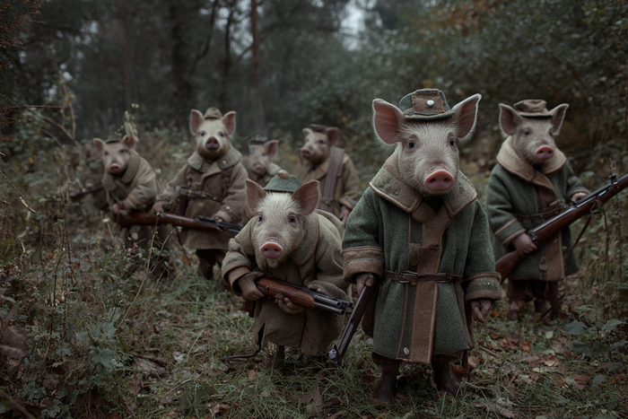 Я ежедневно генерю картинки (тексты — нет, только обработка или составление планов), видео тоже, но сейчас не об этом. В общем, понадобилось мне «нарисовать» енотов с автоматами, идущих по лесу (ну вот такая необходимость возникла). И получил я любопытные галлюцинации генеративной нейронки, даже пруф приложу с промптом и результатами, сам не ожидал такого. Никакой политики, никаких намёков, но, кажется, ИИ начал что-то подозревать 😁