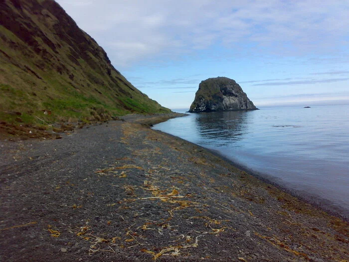 Едем в порт Невельск, там служебный парохед (на базе РС), согласование с погранцами (погранзона), портнадзором, выходим, 4 часа и мы у Монерона.