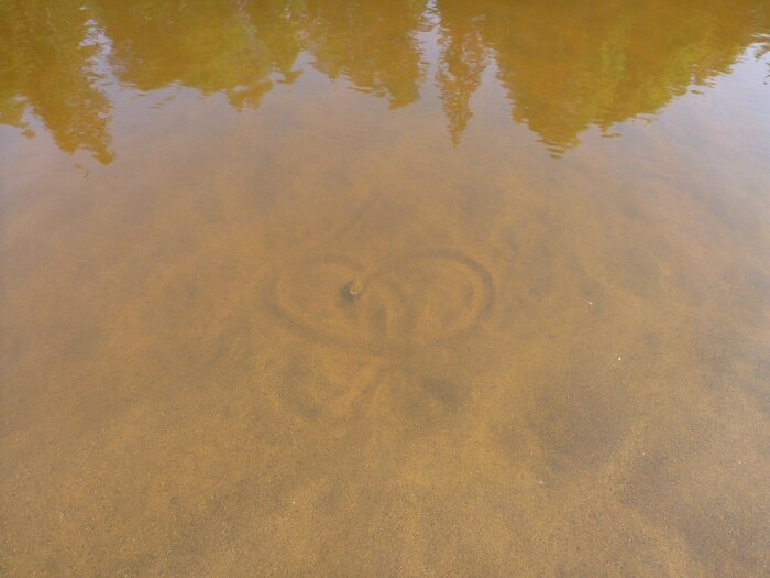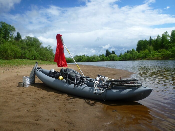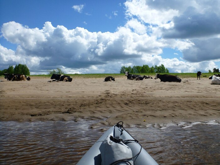 О приближении к жилью можно узнать по увеличивающимся рыбацким местам с утроенными сиденьями и рогульками. Вечереет, присматриваю место для стоянки и причаливаю. Замечаю на другом берегу лодку, не успеваю вынести на берег рюкзак, как на другом берегу появляется мужик и начинает греметь цепью. Решаю, что явка провалена, складываю вещи обратно и иду дальше, минуя Пуксиб. У деревни, в холодной воде с визгом купаются девушки-пуксибки. Стараюсь грести технично.
