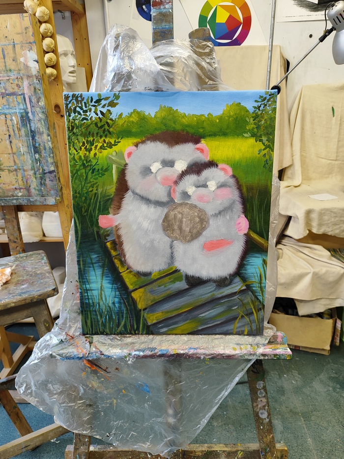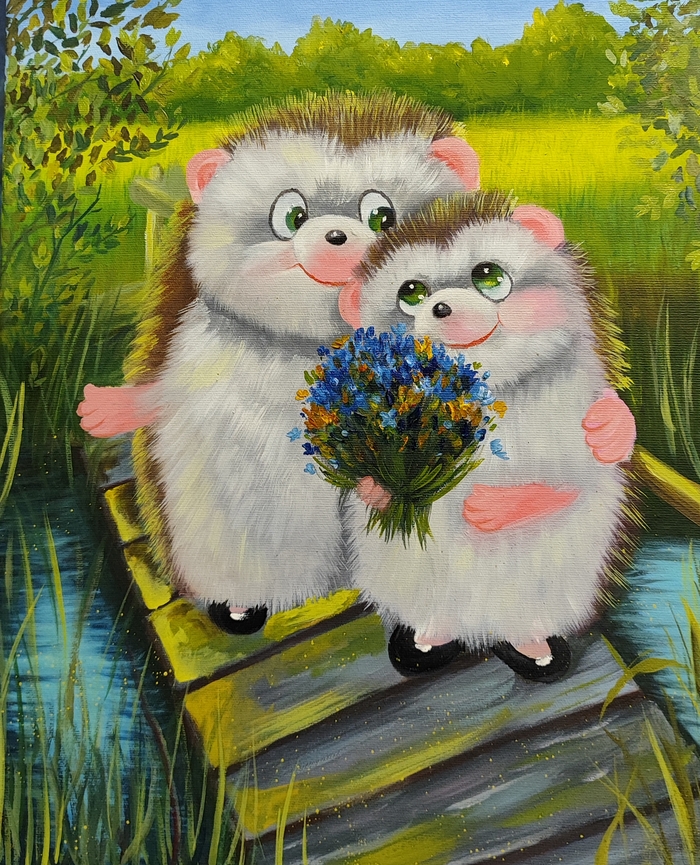 Нарисована по мотивам, очень понравились эти солнечные ёжики. Рисовала маслом. Процесс от старта до результата, одна из моих любимых работ.