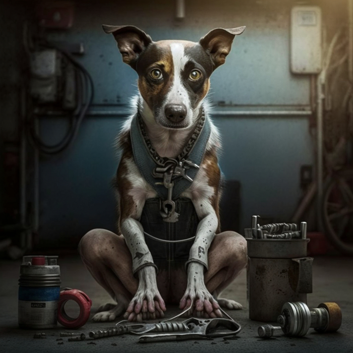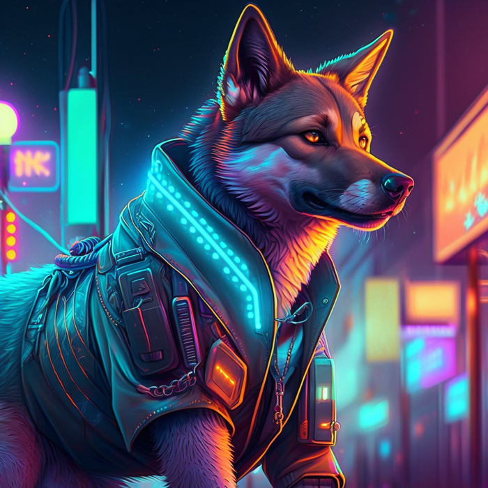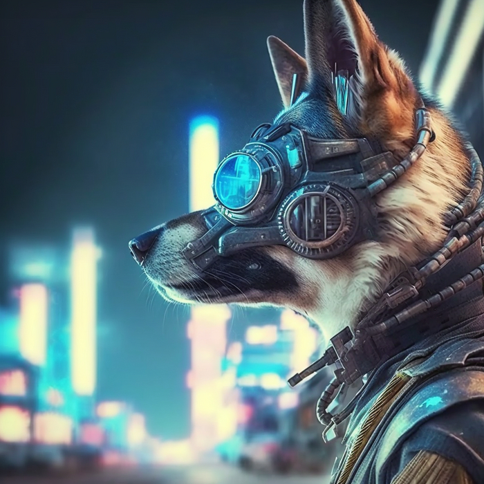 Промпт один, меняем только название породы: humanized (...) dog standing on his hind legs:: wearing sunglasses, leather vest:: with a machine gun around his neck:: with a cigar in his teeth:: with a hat --c 75 --s 750
