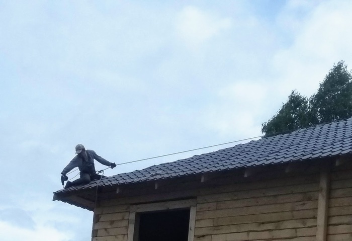 Обычно я готовил охапку бревен и закидывал их наверх - в одного. А уже потом наверху монтировал