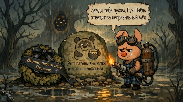 146 Pi.RAT Юмор Кто ходит мстить по вечерам… Серия "Весёлые" картинки 22 часа назад Если кому-то интересно: пока делал картинку, я так проникся атмосферой, что решил — сюжет достоин большего. В итоге сделал песню, довольно грустную. Сейчас монтирую для неё небольшой клип и думаю: стоит ли его сюда выкладывать? Показать полностью [моё] Контент нейросетей Черный юмор Грустный юмор Странный юмор Картинка с текстом Винни-Пух 100 9 5 2 Ещё 0