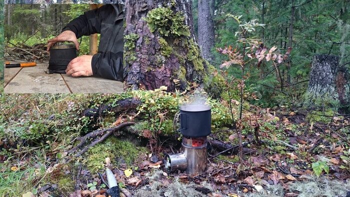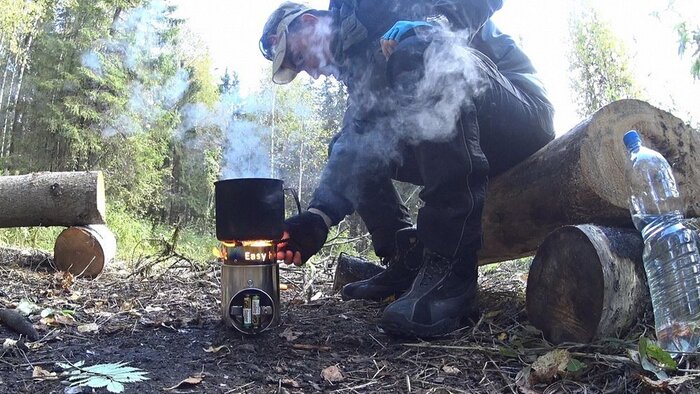 Моя разбирается на три части, складывается как матрешка и помещается в алюминиевый литровый котелок. Наддув работает от двух батареек АА, моторчик потребляет очень мало и за 10 дней комплект я не израсходовал. Корпус из нержавейки, двухстенный, нагнетаемый вентилятором воздух поступает снизу и в верхнюю часть. Температура пламени высокая, вода закипает не хуже, чем на мощной газовой горелке, но трудно регулировать силу пламени. Слабый дождь не мешает. Расход «дров» очень небольшой, на суп и чай хватит веток толщиной с палец, которые можно принести за раз в одной руке. Существенный плюс также в том, что необходимое количество горючего материала можно найти везде, где есть деревья. Даже на самых популярных туристических стоянках, где отдыхающие обломали все сухие ветки с елок в радиусе 300 метров вширь и полтора роста вверх. Даже в дождливую погоду. В принципе можно ломать ветки руками, с помощью ножа, но с пилкой-сучкорезом легче как добывать, так и разделывать до необходимой длины (см 5-10) Я брал Fiskars с выдвижным лезвием длиной 160 мм. Сталь очень хорошая, прекрасно пилит и держит заточку. Существует еще пила длиной 22 см, с более толстым лезвием.