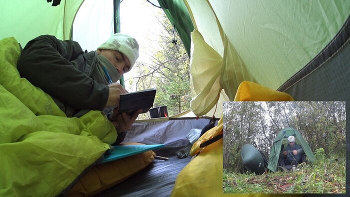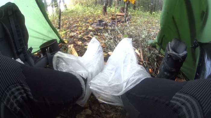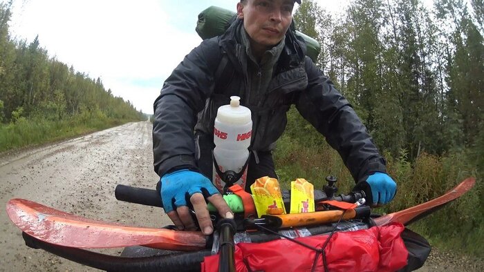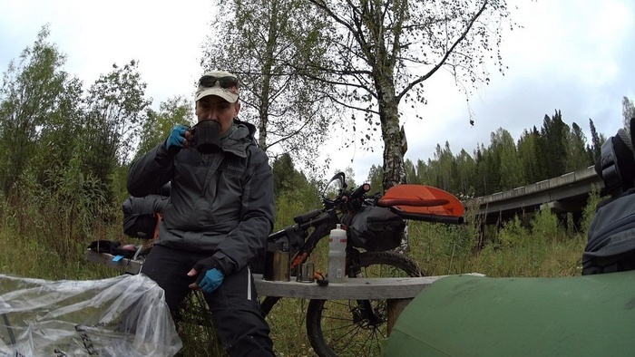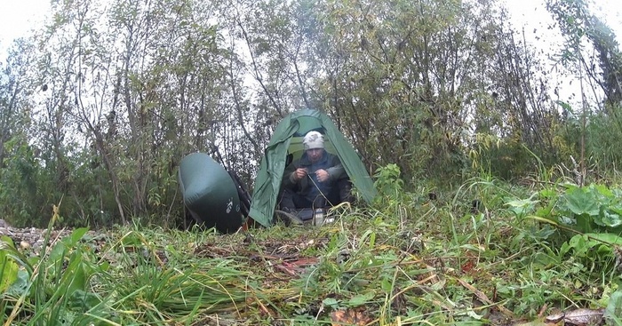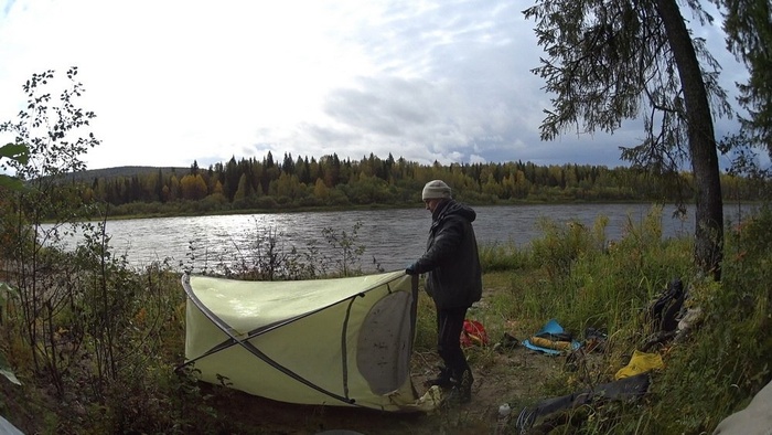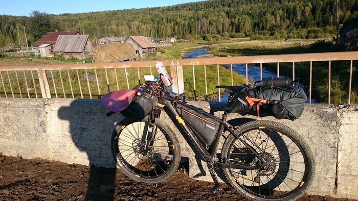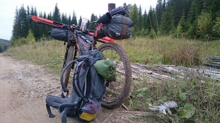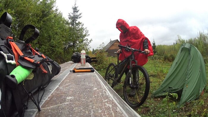 Новый подход предполагал отказ от прицепа, что влекло жесткие ограничения по весу и объему вещей – все снаряжение должно было поместиться в подрулевую, рамную и подседельную сумки велосипеда и рюкзак. Вместо байдарки весом 12 кг должен был использоваться пакрафт весом 3 кг, вместо газа – печка «щепочница», и вместо самонадувного коврика и спальника – надувной легкий коврик и пристегиваемое к нему одеяло. Отказаться от двуслойной палатки в пользу тента, имея опыт предыдущих походов в холодное дождливое время, я не рискнул.