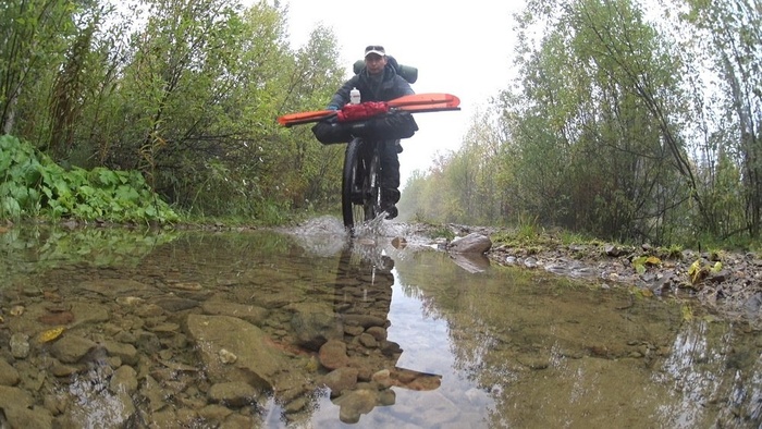...Начиная с 2013 года я прошел несколько автономных вело-водных маршрутов, весной, летом и осенью, пробовал возить надувную лодку в рюкзаке, на багажнике, а затем и используя прицеп к велосипеду. Ходил на каркасно-надувной байдарке, с готовкой еды на газу. Освоившись, задумался над вопросом уменьшения веса и объёма снаряжения. Тут меня зацепила тема пакрафтов, и ближе к концу лета 2017 года родился план нового путешествия.