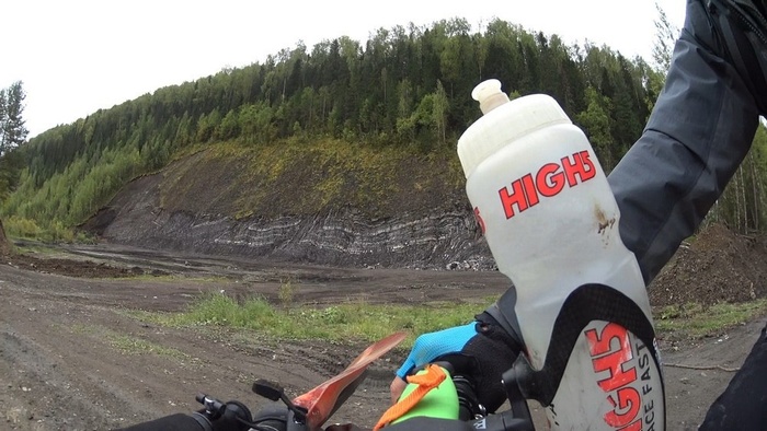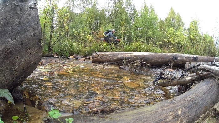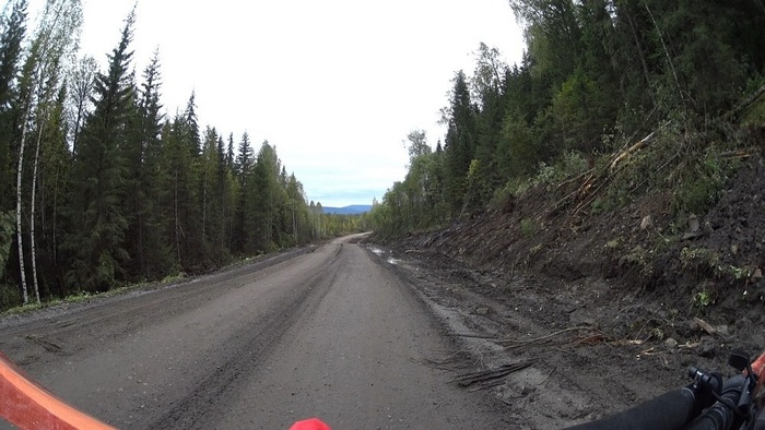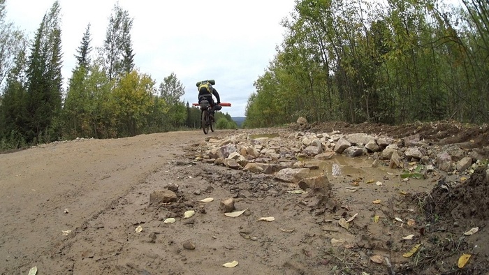 Двигаться стало тяжело, такая дорога, по которой проще идти пешком. Трансмиссия заскрежетала, затем цепь слетела с передней звезды, пришлось все чистить и поливать цепь маслом.