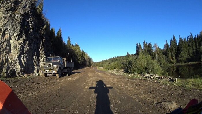 Камазы, порожние, и груженые лесом ползут со скоростью пешехода, скрипя тормозами.