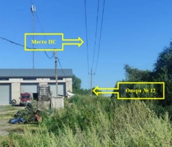 23.05.2024 в 23:39 при проведении погрузо-разгрузочных работ отходов семян подсолнечника в охранной зоне ВЛ 110 кВ произошло перекрытие проводов на кузов грузового автомобиля VOLVO. Водитель автомобиля Г.С.Е. (1983 г.р.), покидая транспортное средство, прикоснулся к двери автомобиля и был смертельно поражен электрическим током. Габарит от нижнего провода ВЛ до земли составил 9,34 метра (при норме 6 метров в ненаселенной местности). Постоянные надписи - порядковые номера опор, знаки безопасности, информация о границе охранной зоны на опорах нанесены.