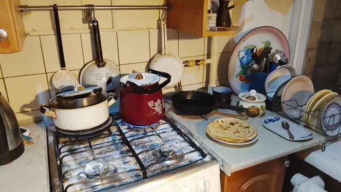 Впрочем, я отвлеклась. Итак, я рассудила правильно. Чтобы быстрее выйти оттуда и с картинами дотащиться до станции в эту пургу, а потом ещё и оформить одну из этих картин в багетной, я не должна ночевать, а просто найти картины, забрать их и тут же назад. Ну, набрала я три ведра снега, так быстрее получить воду для чая и мытья рук, напихала снег в чайник, потом ещё и ещё, так как снег таял, и давал гораздо меньший объём воды, чем он занимал. Приходилось докладывать. Включила тепловую пушку и принялась за поиски. Нужны были четыре картины, одна из коих 80 на 85 см. Крупновата... Ищу, ищу, заодно ставлю картины по размеру, аккуратно, порядок совершенствую))) Уже болят все мышцы, а есть-то как хочется!
