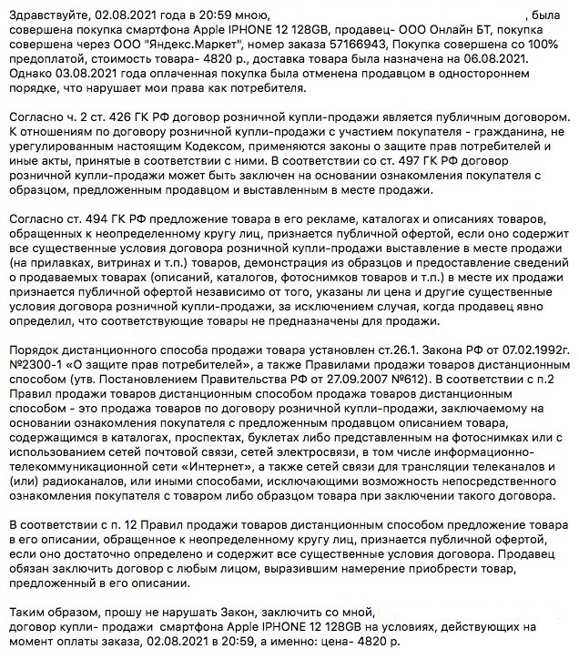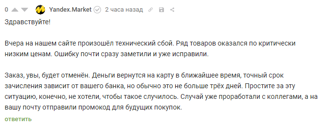 Прислав промокод на 500 баллов. Сейчас напишу досудебную претензия по поводу того что отменили заказ без моего согласия